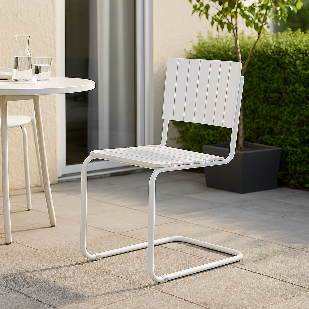 Utegruppen består av ett nätt rektangulärt bord 180x80 cm med tillhörande 6 st stolar.