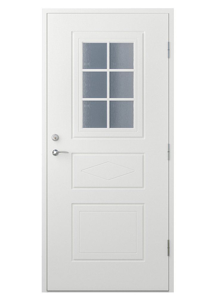 Många ytterdörrar på marknaden har en slät insida, men med denna dörren får du både insida och utsida med det fina frästa mönstret. Dessutom har den dubbel tätningslist för extra isolerande effekt, låskista och justerbara gångjärn inkluderat.